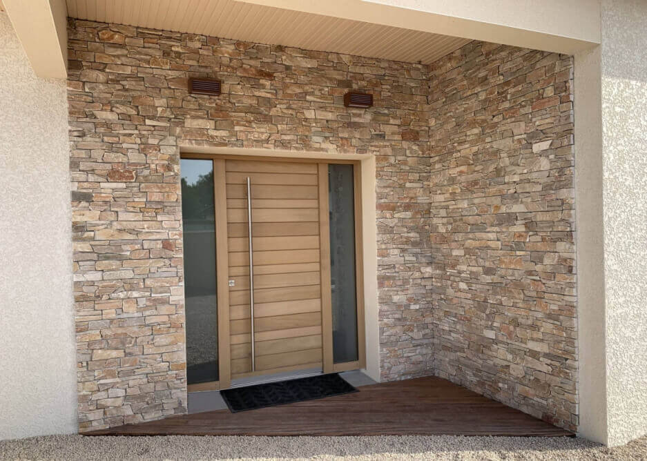 En extérieur, vous pouvez laisser libre court à votre imagination car l’ensemble des parements mentionnés ci-dessus pourront s’appliquer. Concernant les parements en bois, nous vous invitons à appliquer un traitement (saturateur) si vous souhaitez conserver la couleur de vos parements. En effet, le bois aura tendance à griser avec le temps.