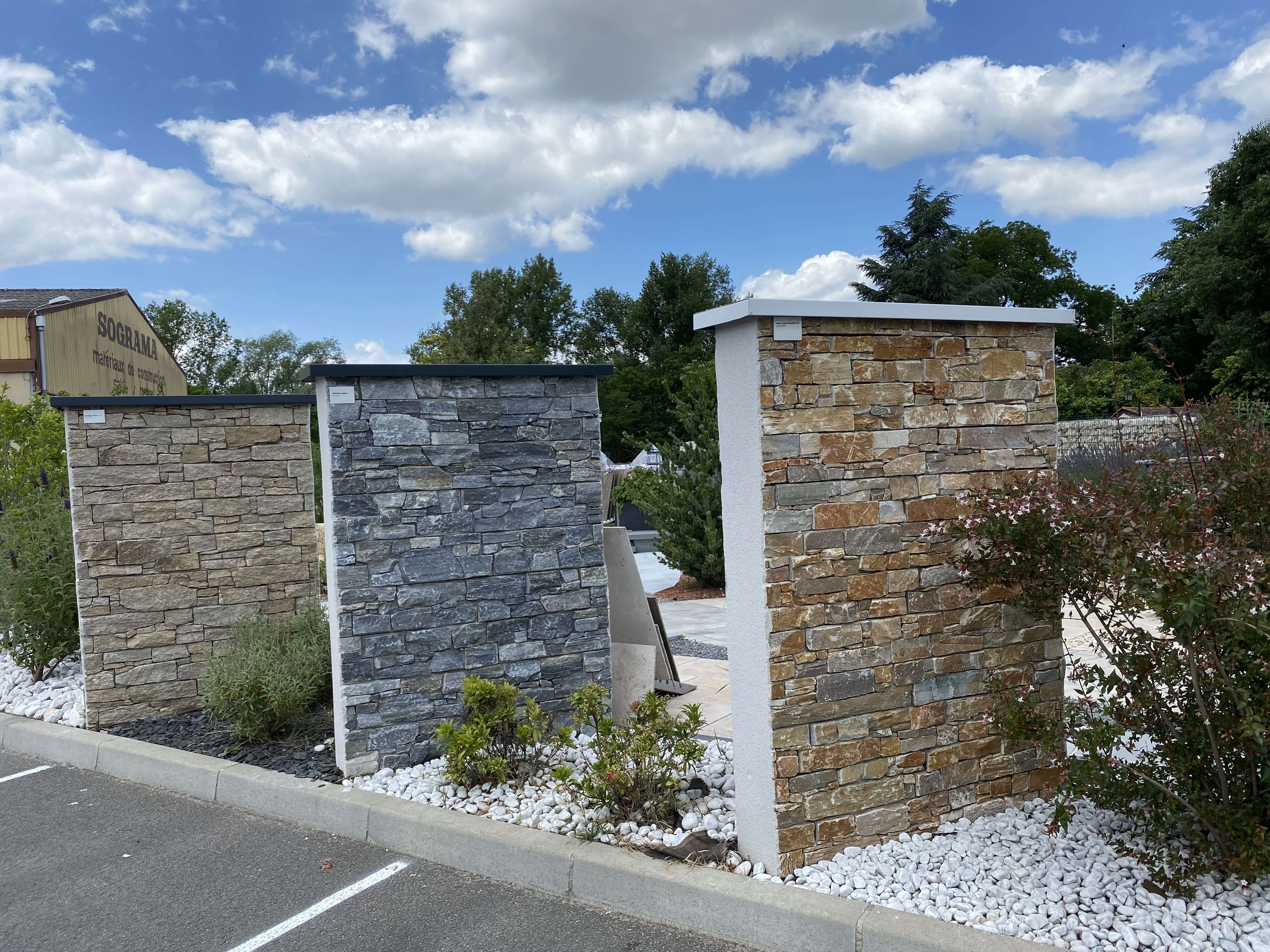 Ces parements constitués à partir de ciment, de granulat de pierre et de colorant, se présentent sous des formes et imitations multiples (briques, pierre, moellons…). Résistants au gel, ces revêtements conviennent parfaitement à une pose en intérieur comme en extérieur.