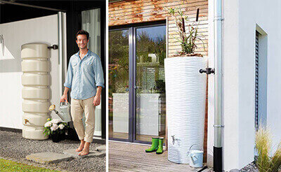 Ces cuves se connectent généralement directement sur votre descente d’eau pluviale. Elles présentent une capacité inférieure à une cuve enterrée (de 350 litres à 1500 litres) et sont généralement utilisées uniquement pour l’extérieur (arrosage des plantes, nettoyeur haute pression…). Leur installation est très simple (une à deux heures) et se réalise via un connecteur directement sur votre descente de chenau. Un robinet est ensuite mis en place sur le bas de votre cuve et la gravité fera le reste.