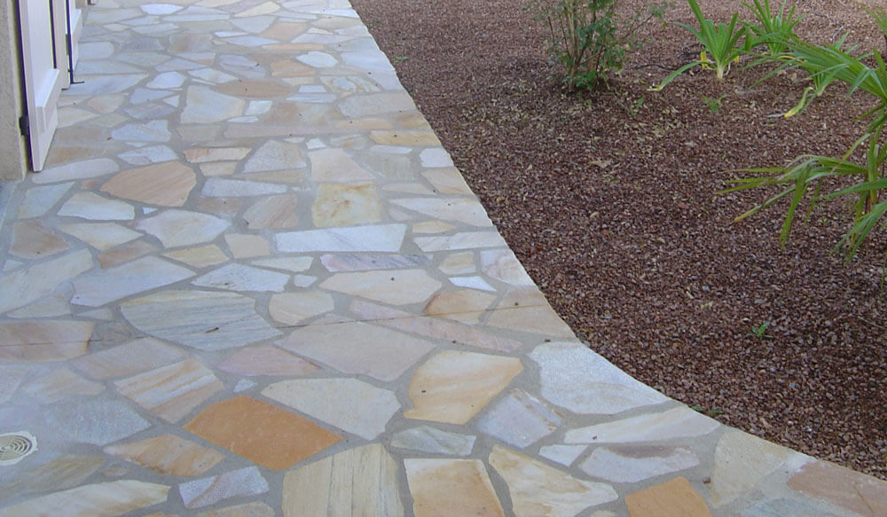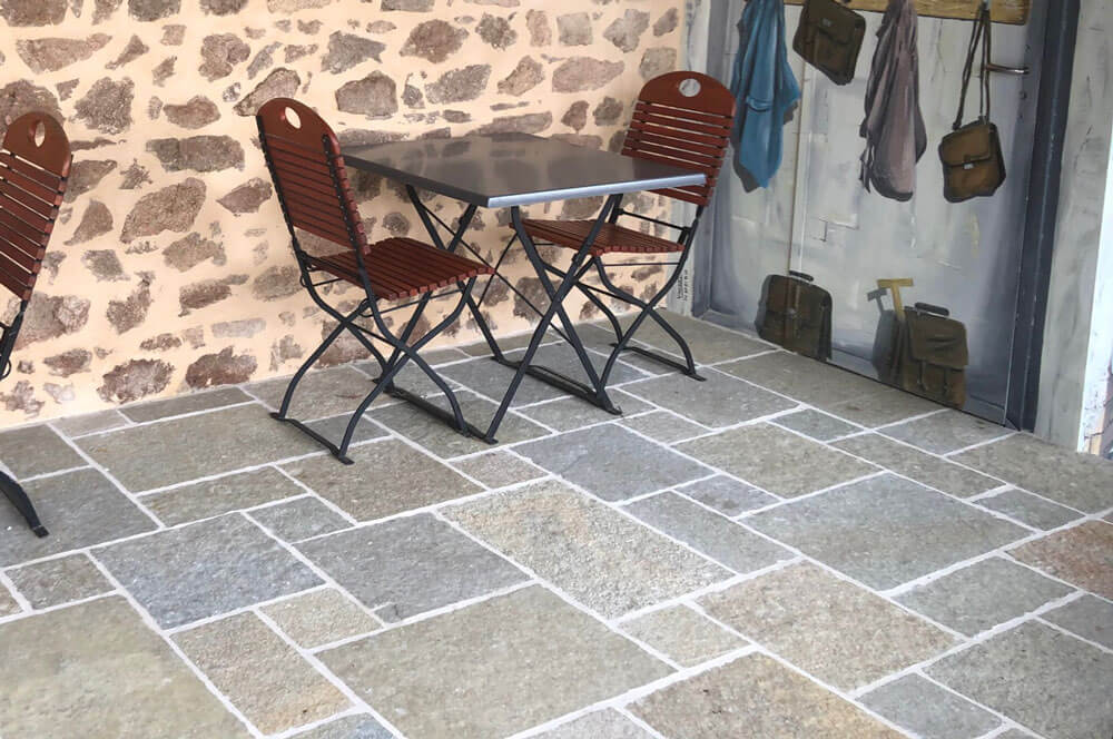 Il s’agit d’un aspect « éclaté » avec des formes asymétriques et irrégulières. Ce format apportera un aspect rustique à la pierre et à votre terrasse. Les joints seront plus larges.