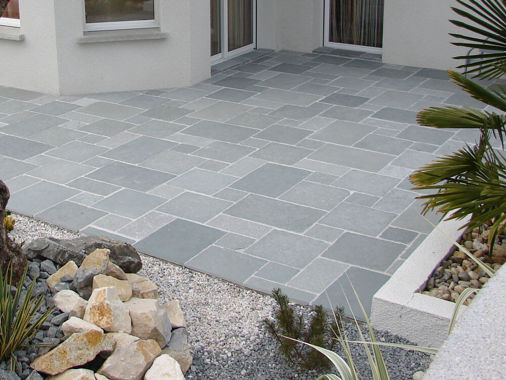 Comme son nom l’indique, cette pierre est bleue avec des tonalités pouvant se rapprocher du gris ce qui rend cette pierre authentique et unique. Bien veiller à mélanger les palettes avant la pose car il peut y avoir de grandes différences entre les palettes