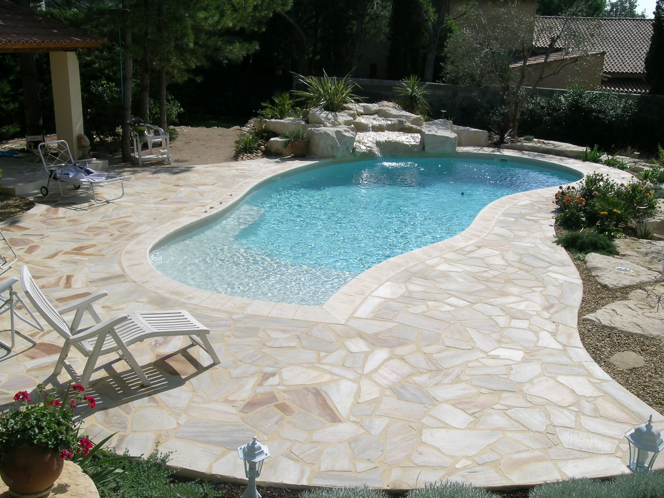 La pierre naturelle est un revêtement très apprécié pour la réalisation de terrasse ou de plage de piscine. En effet, son authenticité, sa panoplie de couleur, son charme et sa durabilité exceptionnelle en font le choix idéal . D’un point de vue décoratif, elle sera s’adapter à tous les types de construction et styles du contemporain au rustique. Pour cela vous pourrez jouer sur les teintes, les formats, les types de pose mais également les finitions.