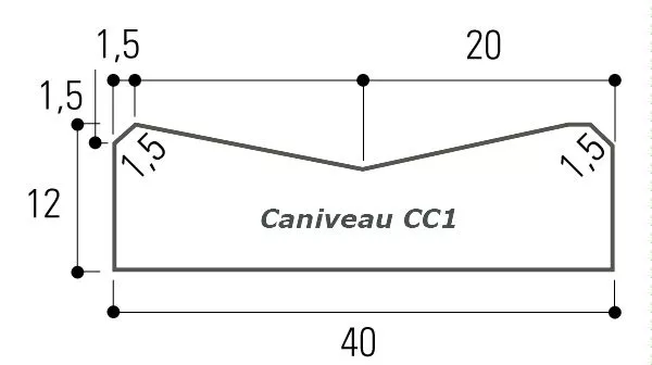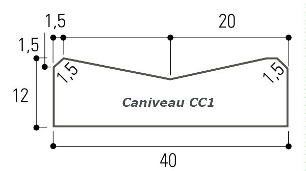Caniveau béton double pente CC1, section 12 x 40 cm, long. 1m