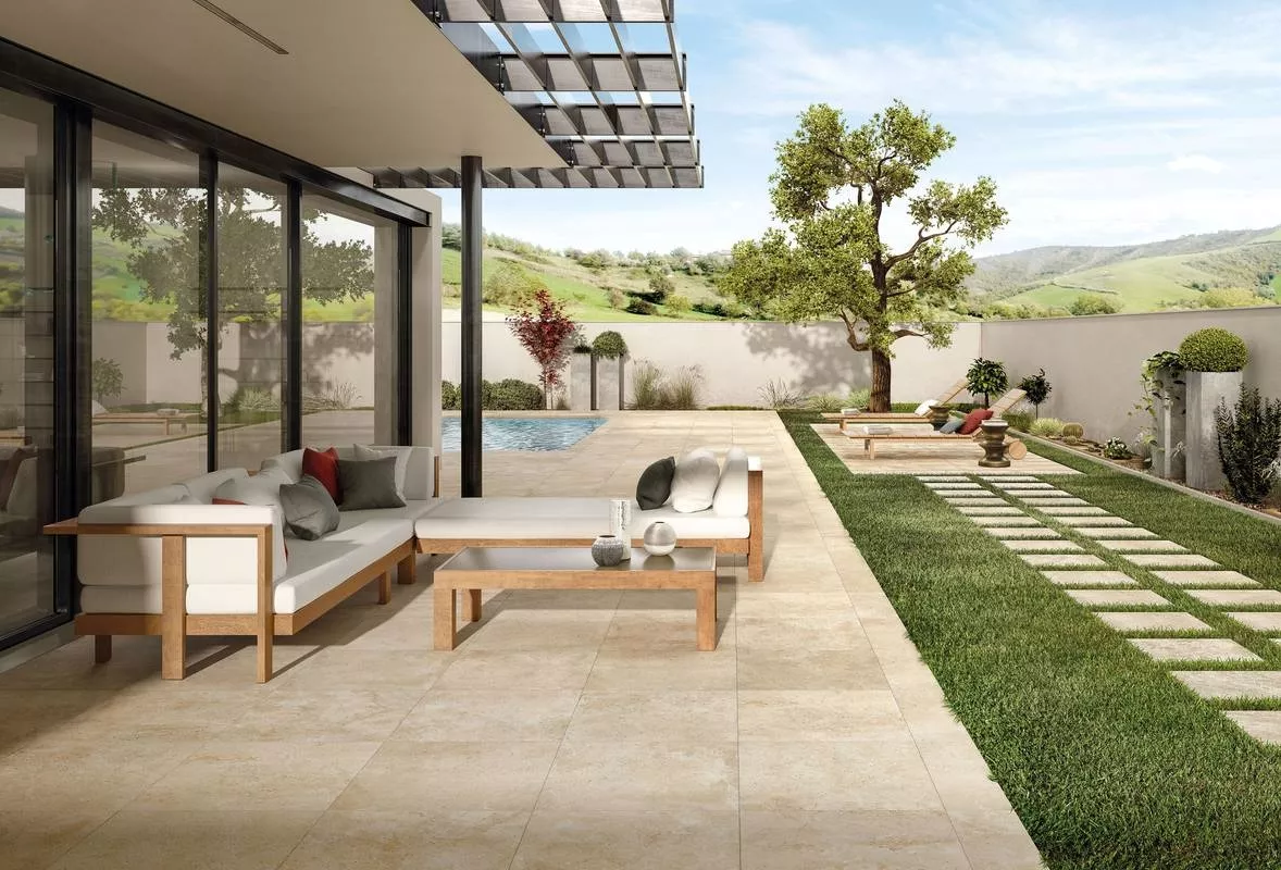Carrelage extérieur aspect pierre naturelle, FRENCHMOOD, L.60 x l. 60 x ép. 2 cm