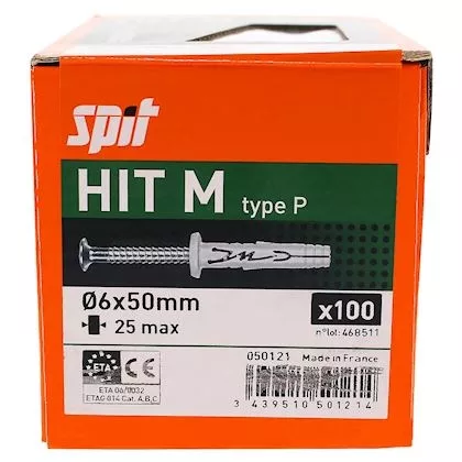 Cheville à frapper multi applications, diam.6 x long. 50 mm, boite de 100