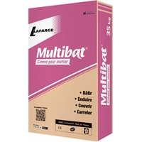 Multibat® est un ciment à maçonner multi-usage de teinte grise qui permet de réaliser des mortiers onctueux, faciles à travailler grâce à son entraineur d’air. Idéal pour monter des murs, réaliser des enduits, la pose d’éléments de toiture et le scellement de carrelage.