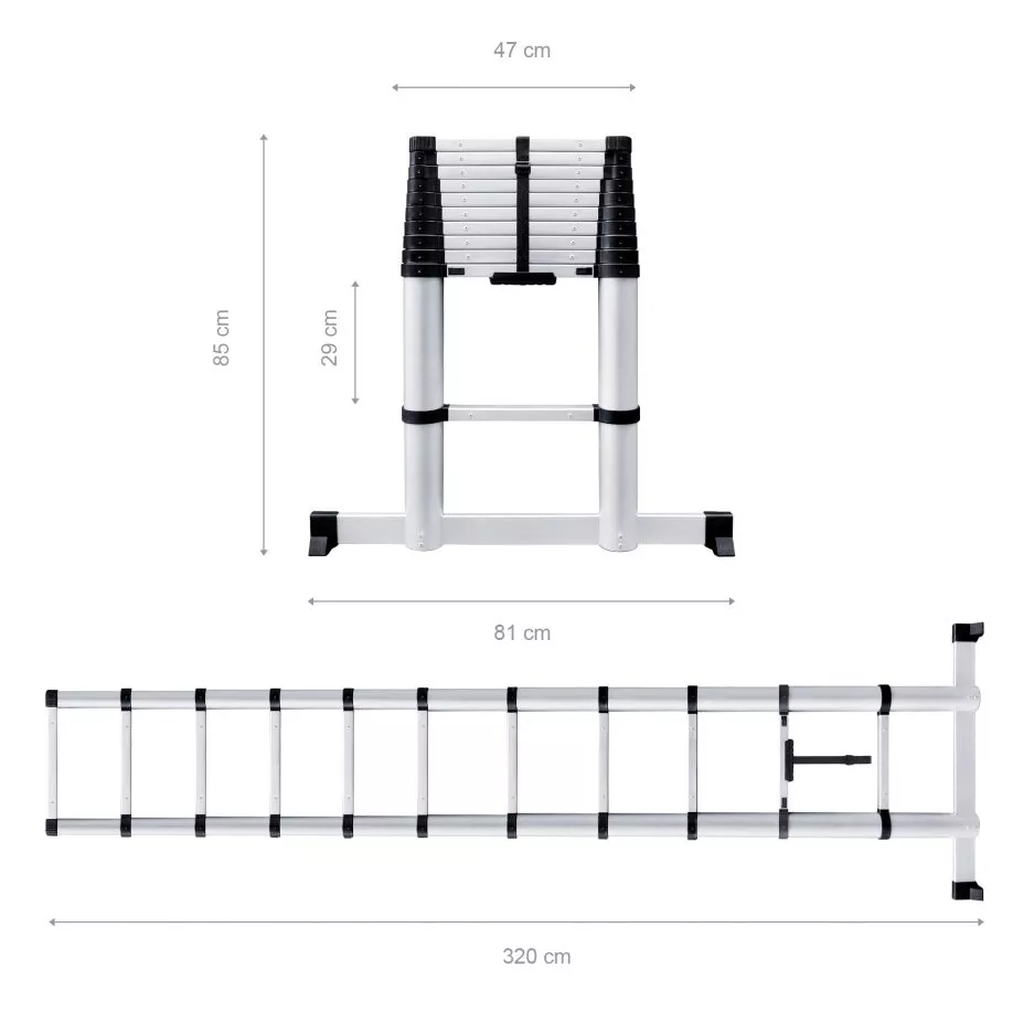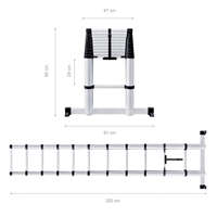 Echelle téléscopique en aluminium, de 85 à 320 cm, 10 marches