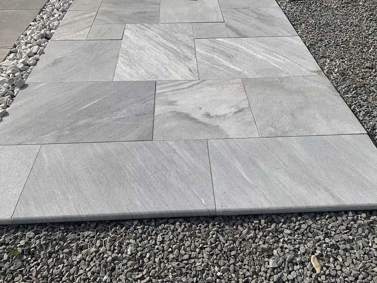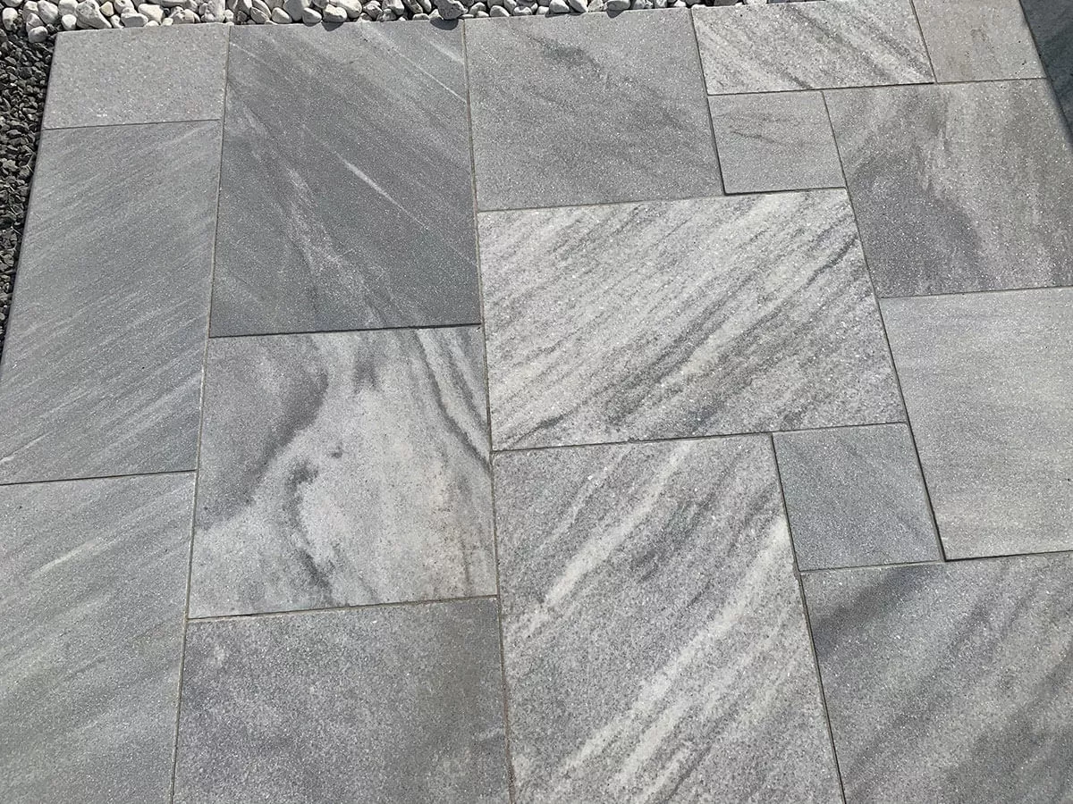 Dalle en pierre naturelle nuancée grise, ayant un aspect très contemporain car elle à tous les côtés sciés, apportant une touche noble à vos chantiers extérieur et dans des coloris très tendance. La surface de ce dallage est très agréable au marcher, légèrement travaillé par une...
