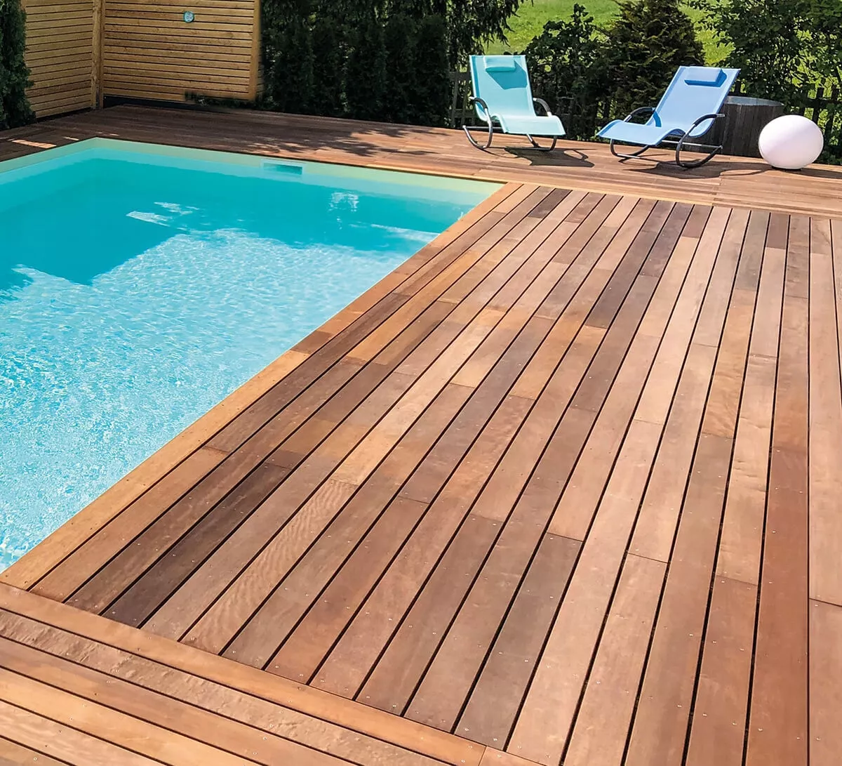 Lame de terrasse en bois exotique Itauba, couleur brun jaune, Sect. 14 x 2 cm