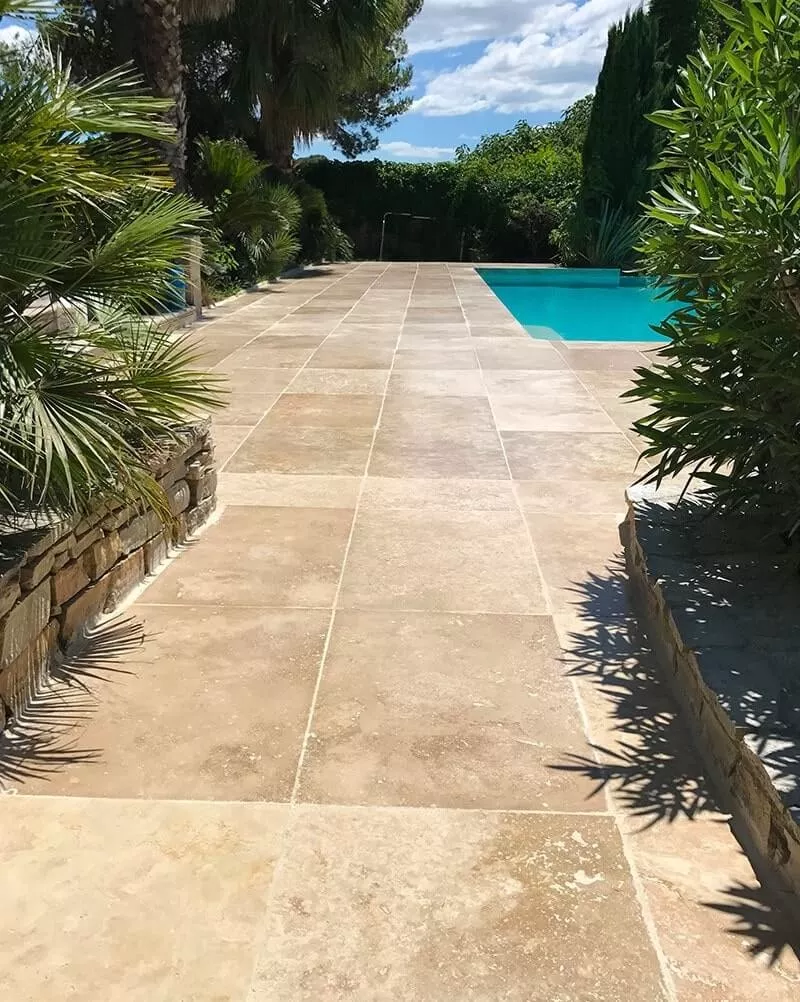 Margelle travertin mixte beige vieillie 61x33x5 cm