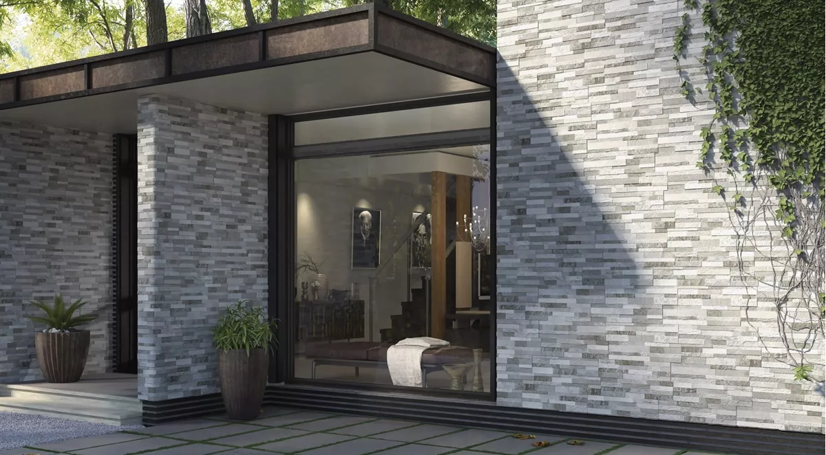 Parement effet piere naturelle en carrelage, série Cubics, couleur gris