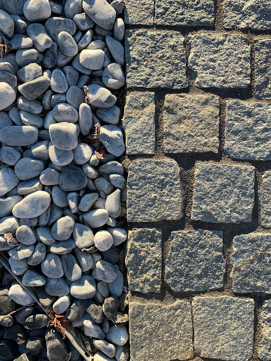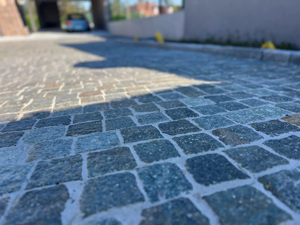 Pavé en pierre naturelle de luzerne, couleur gris vert, L.10 x l.10 x ép.4/6cm