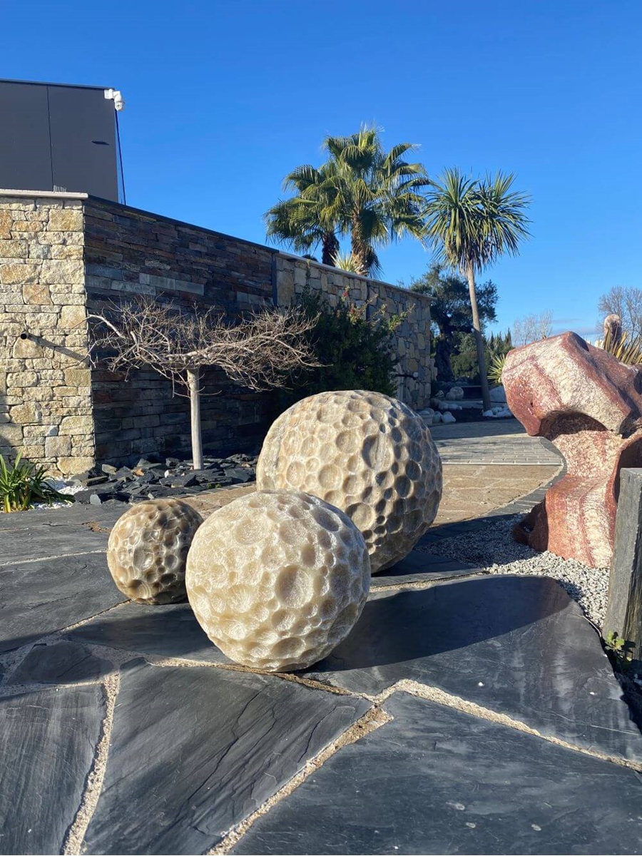 Ces sphères décoratives pour jardin, massif, terrasse, plage de piscine sont en pierre naturelle. Elles puissent leur charme dans les alvéoles ressemblant à des cratères ou des impacts de météorites d’où elles puissent leur nom : Sphère planète. Comme l’ensemble de nos sphères...