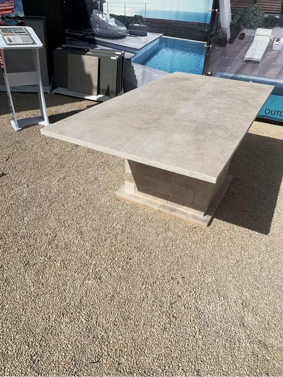 Table en travertin, coloris mix beige, L.200 x l.100 x ép. 3 cm
