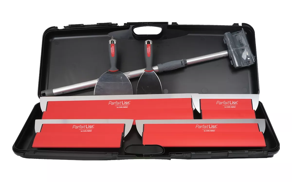 La valise Parfait Liss’ permet à tout plaquiste de pouvoir lisser et serrer des bandes à joint des plaques de plâtres. Ce kit valise est composé de : • 4 lames Parfait Liss'® (25, 35, 45 et 60 cm) en acier inoxydable trempé souple et bords arrondis progressifs anti trace • 1 perche...